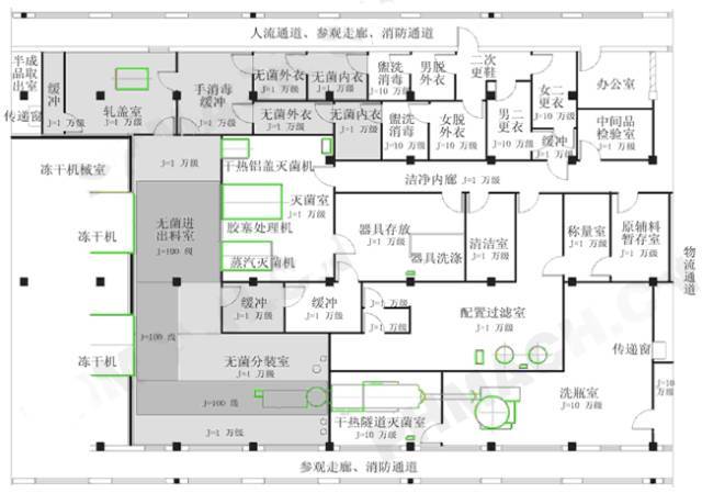 二、無(wú)菌制造生產(chǎn)線(xiàn)工藝平面布置